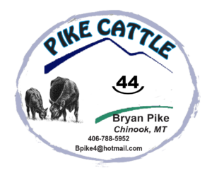 Pike Cattle is operated in conjunction with Four Butte Cattle Company, which is located in the Bear Paw Mountains, south of Chinook, Montana. Four Butte Cattle Company is owned and operated by my father Kent Pike. Management of the registered herd is much like that of the commercial herd. The majority of the bull calves are sold as steers, resulting in only the top end of the bull crop being retained.